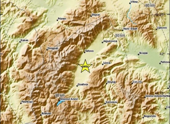 Земјотрес со јачина од 2,7 степени предмалку е регистриран во тетовскиот регион. Според податоците од ЕМСЦ, земјотресот бил на длабочина од 5 километри.