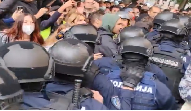 Како што јавува репортерот на Н1, полицајците се пробија до службениот влез на судот, а на вториот влез на зградата дојде до турканица меѓу граѓаните и Жандармеријата. Во судирот едно лице е повредено, а на покривите на некои од возилата на блокадата можеа да се забележат заштитни маски и шишиња со физиолошки раствор – знак дека демонстрантите се подготвени за продолжување на отпорот.